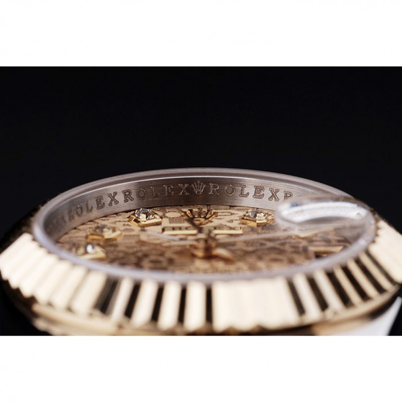 Diese Replik-Uhr wurde mit größter Liebe zum Detail gefertigt und verfügt über ein langlebiges Gehäuse aus gebürstetem Edelstahl, eine Lünette aus 18-karätigem Gelbgold und ein Zifferblatt in Gold. Sie wird von einem hochwertigen japanischen Miyota-Uhrwerk angetrieben und ist mit einem Saphirglas ausgestattet, das Kratzern widersteht. ‚