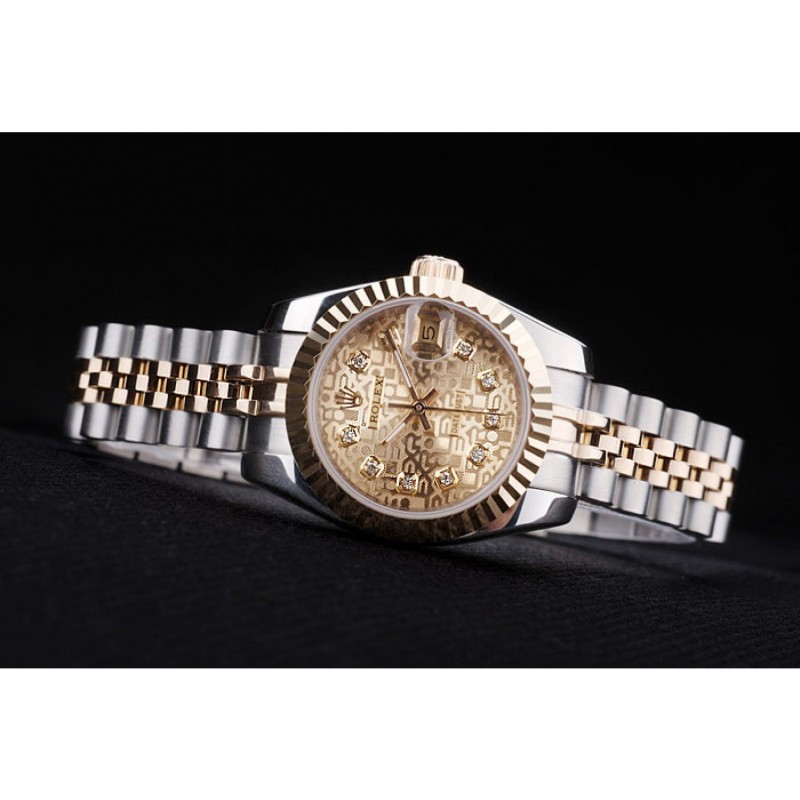 Das Armband aus zweifarbigem Gliederteil aus gebürstetem Edelstahl und 18-karätigem Gelbgold verleiht der Uhr einen Hauch von Luxus. Die verdeckte Schließe ist mit dem Rolex-Logo verziert und bietet einen sicheren und bequemen Sitz. ‚
