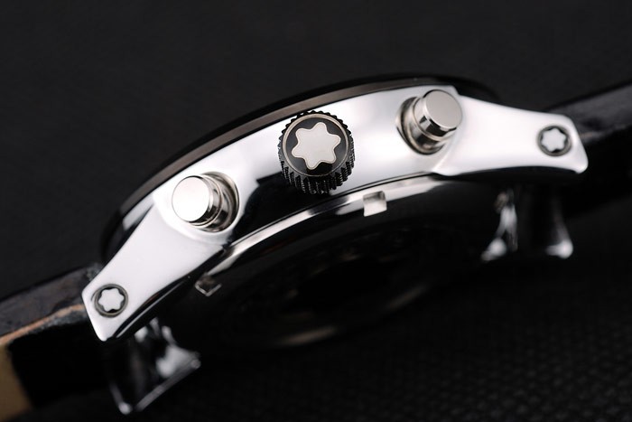 Discover the MontBlanc First Quality Replica Watch 4250, an exceptional representation of the iconic brand. This timepiece boasts a polished stainless steel case and transparent case back, showcasing the intricate Japanese Miyota movement. The black crocodile leather strap, adorned with the MontBlanc logo, adds a touch of sophistication. The sapphire crystal and ion-plated bezel ensure durability and scratch resistance. With a diameter of 50 x 43 mm, it effortlessly complements any wrist.